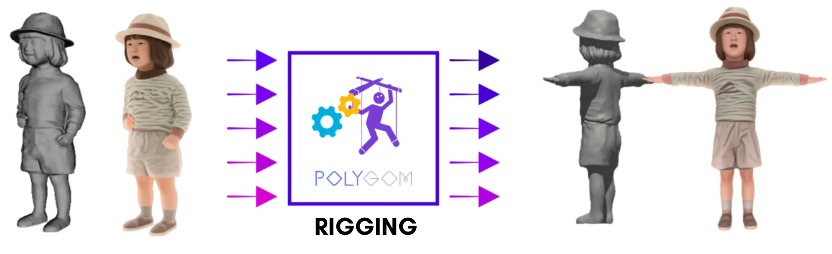 Efficiency: Eliminates the need for manual rigging, significantly reducing time and effort required to create fully functional 3D avatars..